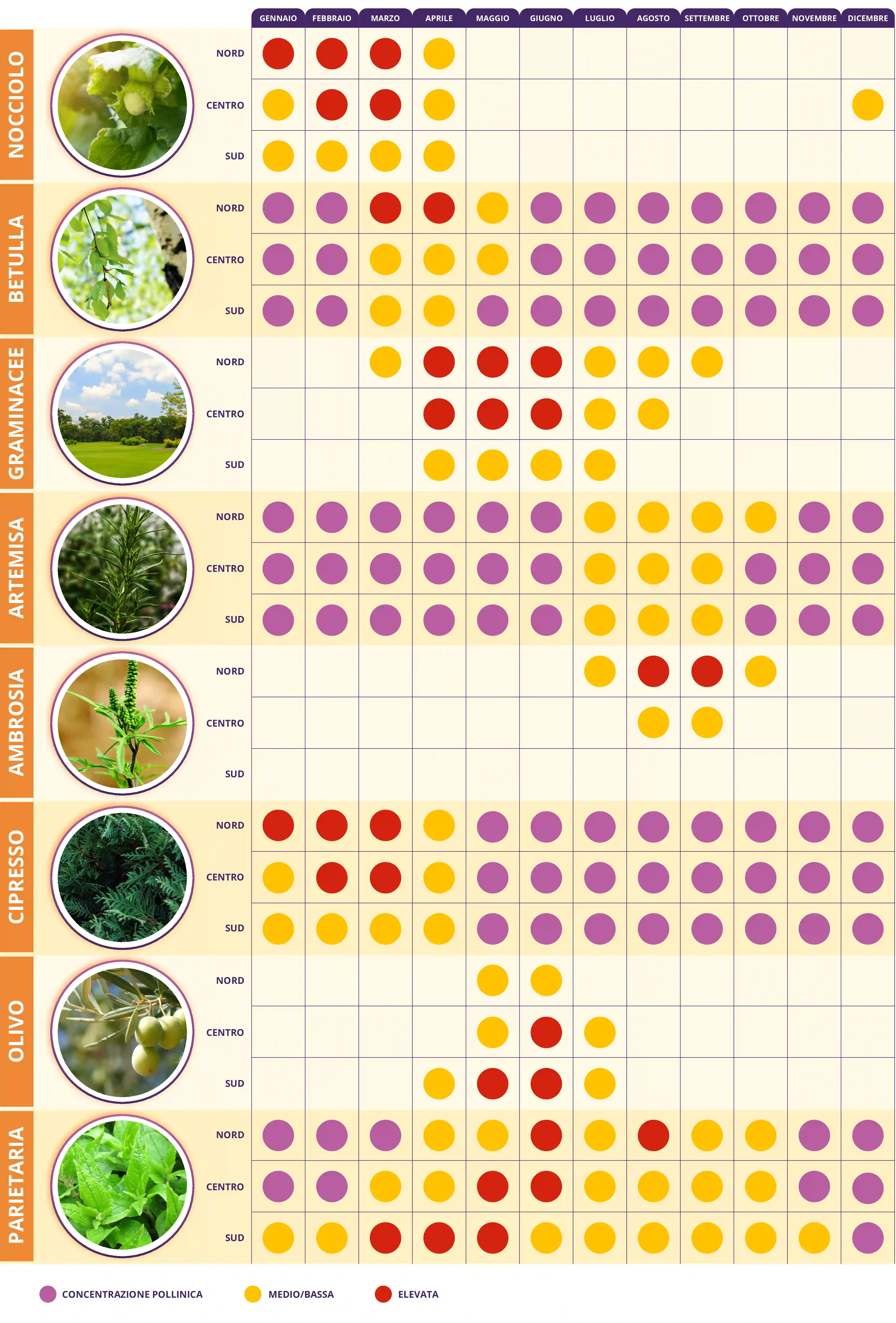 Nel nostro Paese ci sono differenze geografiche significative che incidono sui calendari pollinici.